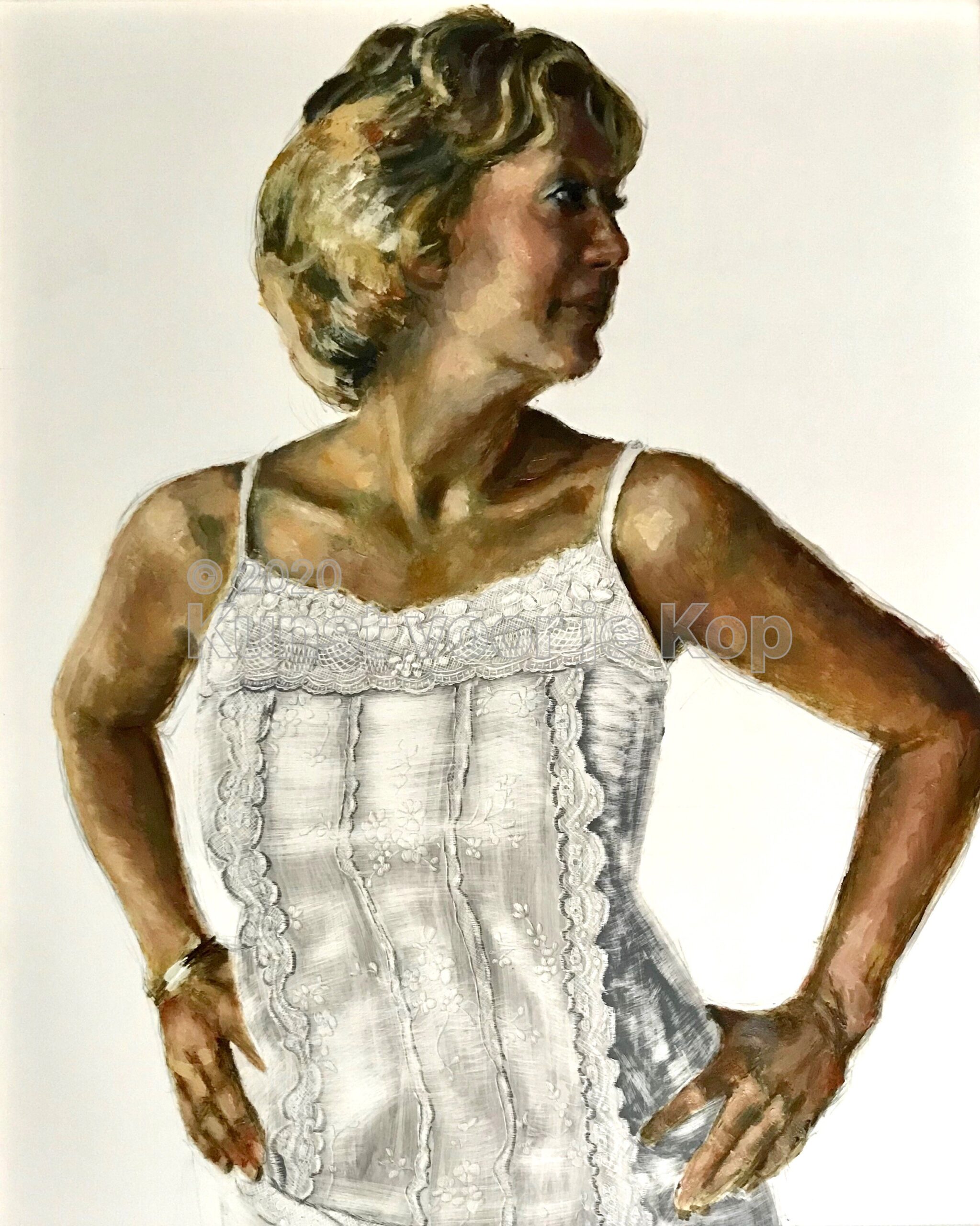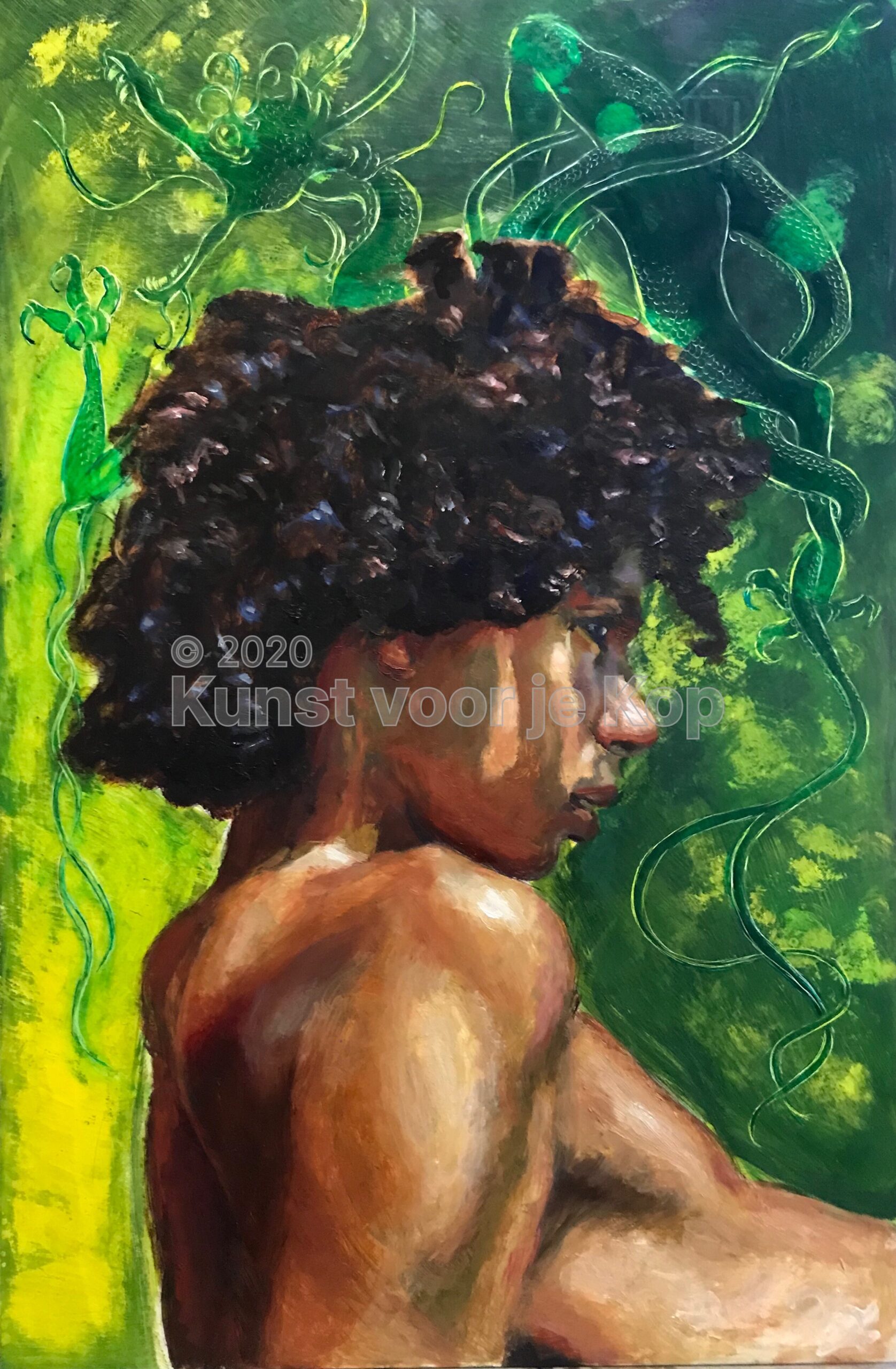 In mijn figuratieve serie Inks & Oils combineer ik twee materialen op één drager: olieverf en inkt. Mijn favoriete onderwerp is altijd de mens, van alle leeftijden, maar ook dieren, planten, zelfs monsters. Als het maar ademt…